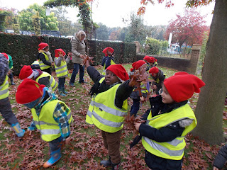 Bladeren, kastanjes, eikels, dennenappels, okkernoten,... werden gesorteerd.
